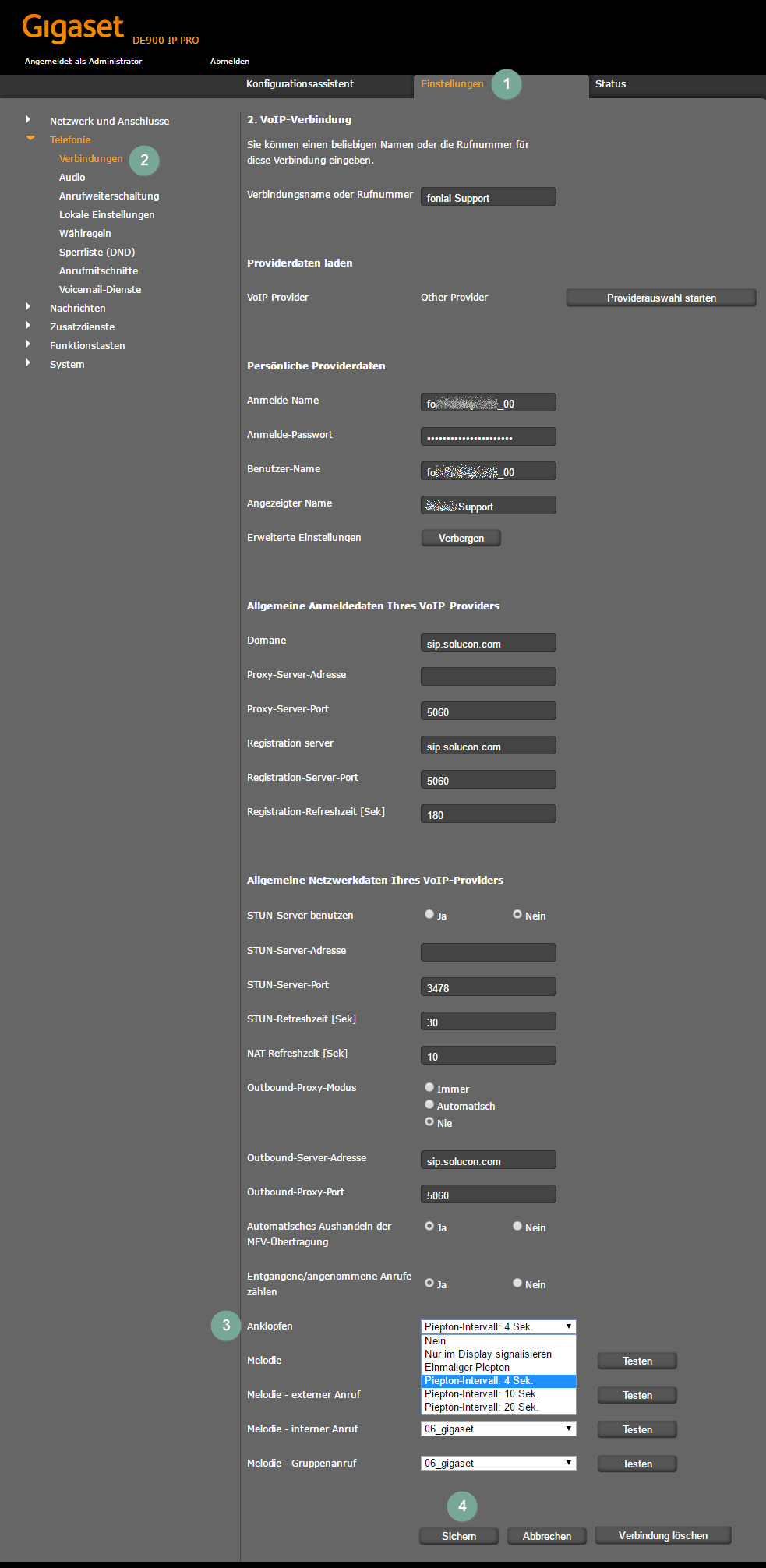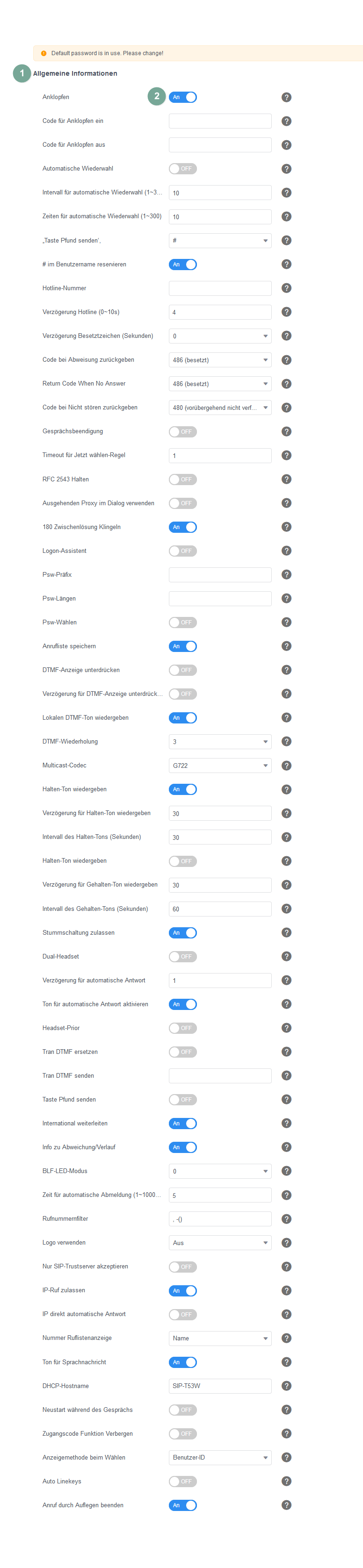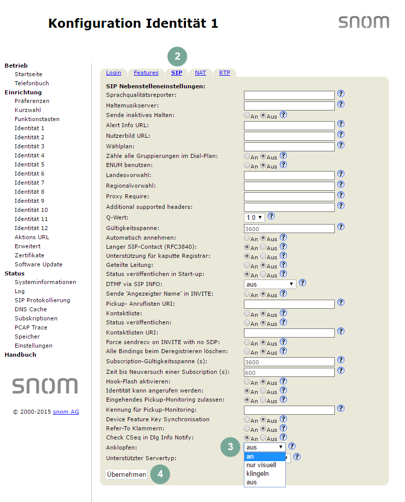 Sie haben die Möglichkeit die Funktion "Anklopfen" am Endgerät einzustellen. Die Voraussetzung hierbei ist, dass parallele VoIP-Verbindungen an Ihrem Telefon zugelassen sind. Diese Einstellung ist Teil der Liefereinstellung, kann aber über die Weboberfläche geändert werden.